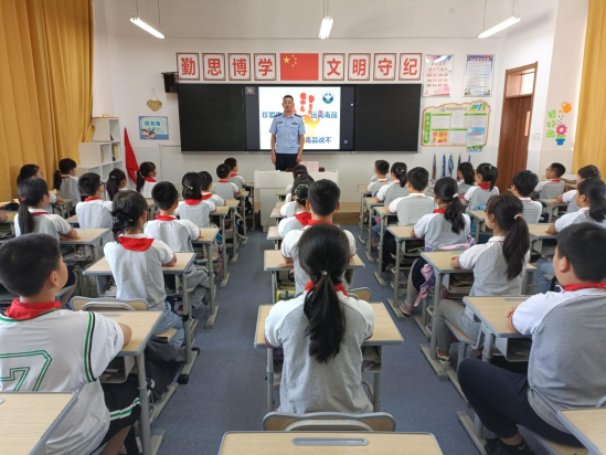 活动中,学校法治副校长王彬警官为五年级学生上了一堂生动的禁毒宣传课。王警官利用PPT课件,图文并茂地为学生讲解了毒品的发展史、危害以及新型毒品的种类,介绍了新型毒品的伪装性、迷惑性及危害性,并通过新型毒品模具展示、现场互动、发放禁毒宣传册等方式,让同学们对毒品危害有了直观的认识和深刻的了解。随后,学生们就如何在生活中拒绝毒品、宣传禁毒知识等踊跃发言,互相交流学习