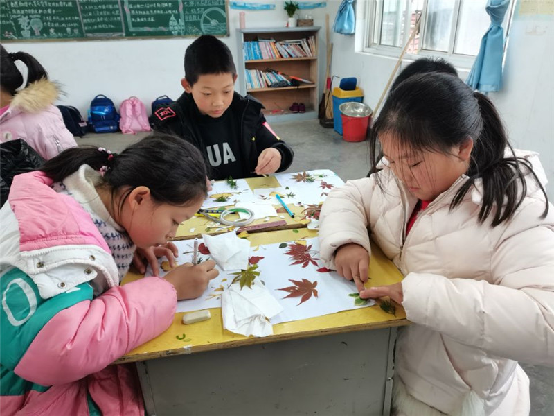 12月7日的课后延时服务中,该校吴春梅老师引导学生开展了一次别开生面的树叶贴画活动。