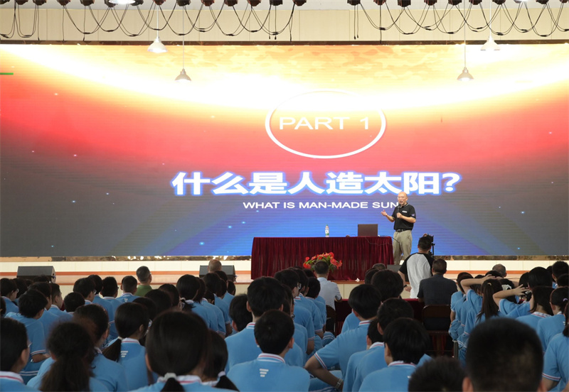 随后,第十三届安徽省政协常委、中国科学院等离子体物理研究所研究员沈飊以“人造太阳与未来能源”为主题,深入浅出地介绍了核聚变能源这一前沿科学技术,为在场学生带来一场精彩的科普讲座,使大家深切感受到科技的魅力,进一步激发了对科学探索的兴趣。