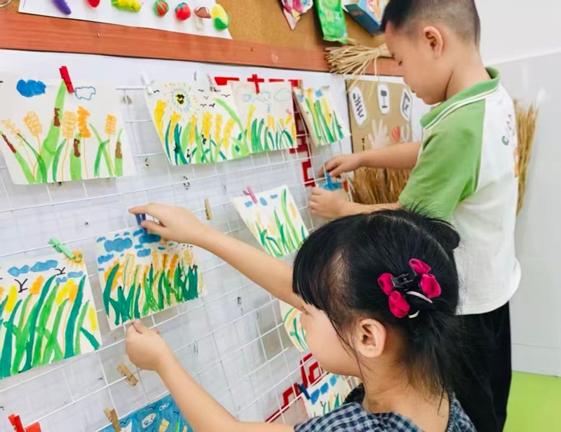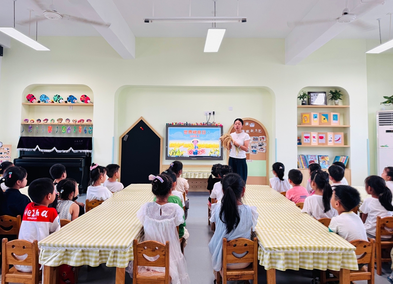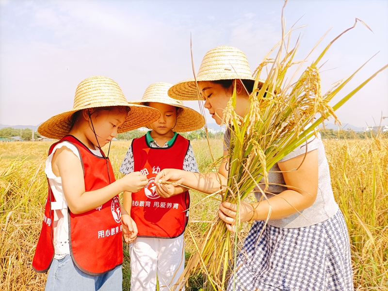 黟县渔亭幼儿园开展“童心惜粮食 趣味育美德”活动,通过看稻穗、剥稻壳、插秧比赛和丰收绘画,让幼儿在趣味体验中理解粮食来之不易,培养节约好习惯。