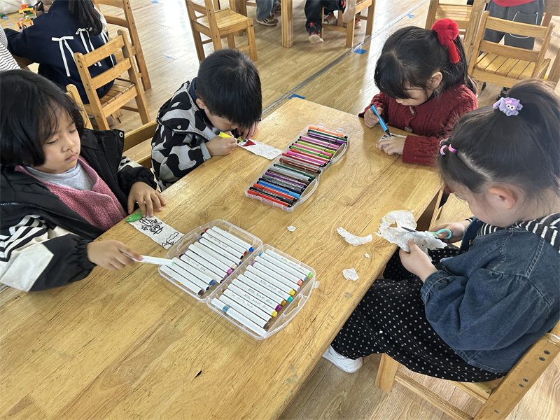等湿纸在通风处晾成带着自然纹理的手工纸,孩子们又化身“设计师”:用小剪刀裁出书签形状,有的还在纸上画了小彩虹、小房子。“我的书签闻起来是桂花味的!”孩子们鼻尖凑上去轻轻嗅着,纸面上的桂花碎像是把秋天“钉”在了书签里。