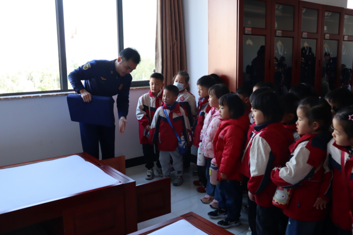 走进宿舍,整齐划一的“豆腐块”被子让孩子们惊叹不已。消防员现场演示叠被子技巧,手把手教孩子们折叠小毛巾,将严谨细致的作风传递给每一位幼儿。