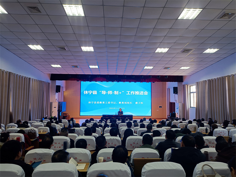 为深入落实立德树人根本任务,破解基础教育领域育人难题,构建“全员育人、全程育人、全方位育人”新格局,休宁县紧扣“精准导向、多元筑基、协同育人”核心思路,全面推进中小学“导-师-制+”工作,2025年11月22日上午我县召开第4次“导-师-制+”工作推进会,县委教育工委全体委员、教育局股室负责人、各学校(园)领导班子全体成员200余人参会。