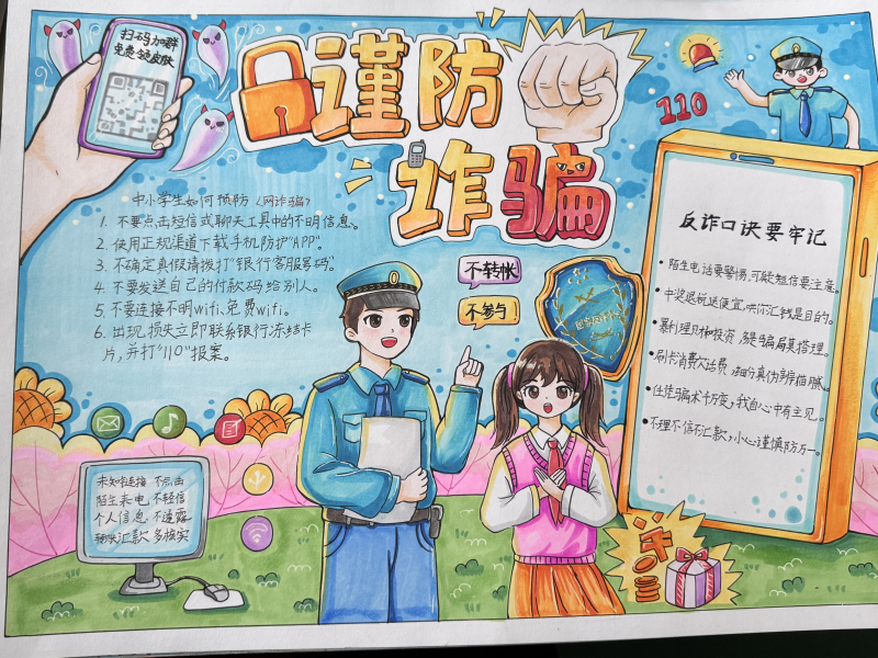 近日,由祁门县公安局联合县教育局、祁门邮政分公司主办的“开学季”反诈进校园主题宣传暨“防骗”手抄报征集活动圆满落幕。