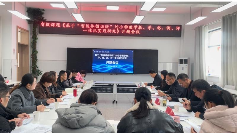 近日,鲍茵茵名师工作室申报的省级教育信息技术课题《基于“智能体循证链”的小学数学教、学、练、测、评一体化实践研究》开题报告会,在徽州二中小学部举行。市教科院副院长罗勇、黄山市小学数学兼职教研员李芳等专家领导亲临指导,区电教馆馆长吴晚生主持会议,课题组成员全员参会。