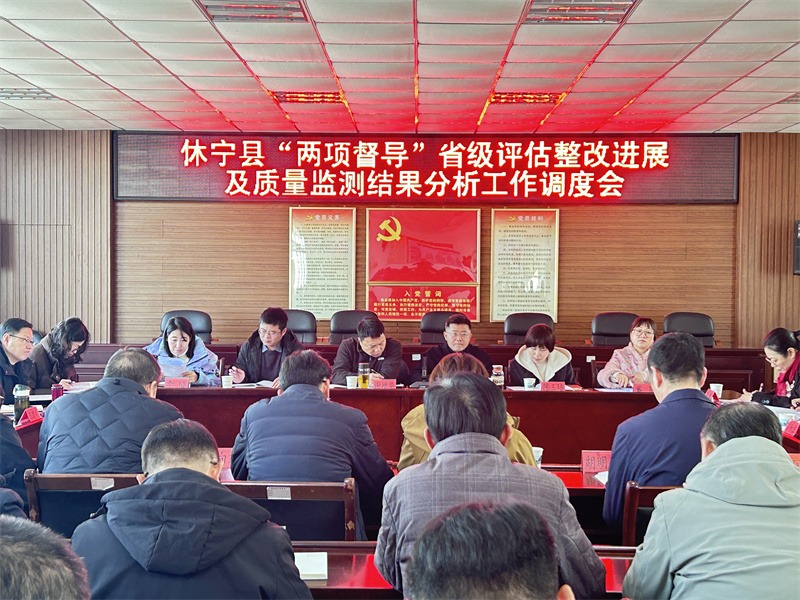 12月18日上午,黄山市委教育工委委员、市教育局督学谢增华率队调研休宁县“两项督导评估”省级督导评估反馈问题整改工作。县政府副县长胡芬,县委教育工委书记、县教育局局长谢卫权,县教育局班子成员及相关股室负责人及部分学校主要负责人参会。