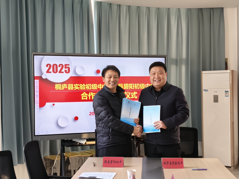 近日,黟县碧阳初级中学与桐庐县实验初级中学合作共建签约仪式在碧阳初中顺利举行,两校正式缔结教育合作关系。