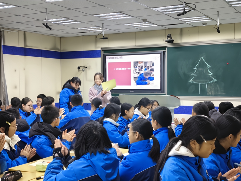 活动以“立德树人”为核心,紧扣初中班主任工作实际,创新采用“示范课展示+专题研讨”形式,搭建高质量交流平台。碧阳初中汤晶晶老师率先呈现元旦主题班会示范课,通过互动体验与案例分享,将节日教育与学生思想引导、班级凝聚力建设深度融合,为参会者提供了可借鉴、可复制的实践范本。