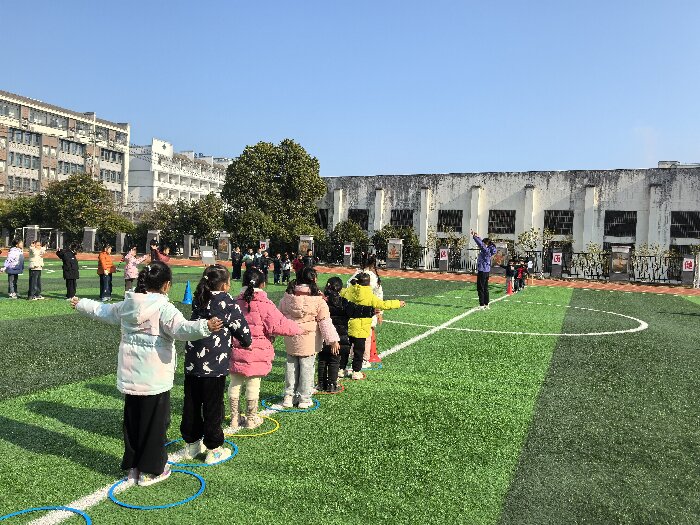 紧接着,大家移步东城实验小学,观摩了小学充满节奏感与集体协作的大课间活动。从幼儿园自由、游戏化的“玩”,到小学开始有结构、有要求的“练”,老师们在观摩中直观感受着不同学段体育活动的特点与衔接点。
