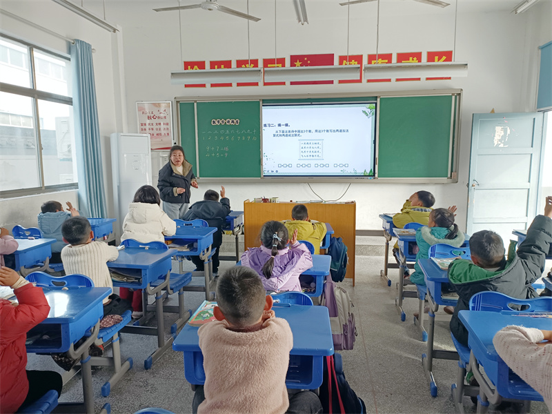 低年级教学展示充满童趣。教师们带领学生走进古诗天地,从“一去二三里,烟村四五家”中寻找数字密码,在“南朝四百八十寺”里感受数量意境,通过诵读、计数等形式,让孩子们在诗词韵律中发现数学的简洁之美,实现文理启蒙的有机融合。