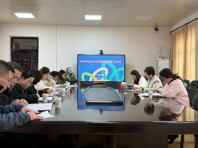 为深入贯彻落实义务教育英语课程标准精神,科学谋划新学期英语教研发展,新学期伊始,祁门县中小学英语教学教研工作会议在祁门县教育局召开。中小学英语工作室成员、城区学校英语教研组长、骨干教师及英语学科教研员齐聚一堂,共话英语学科发展,共研提质增效之策。
