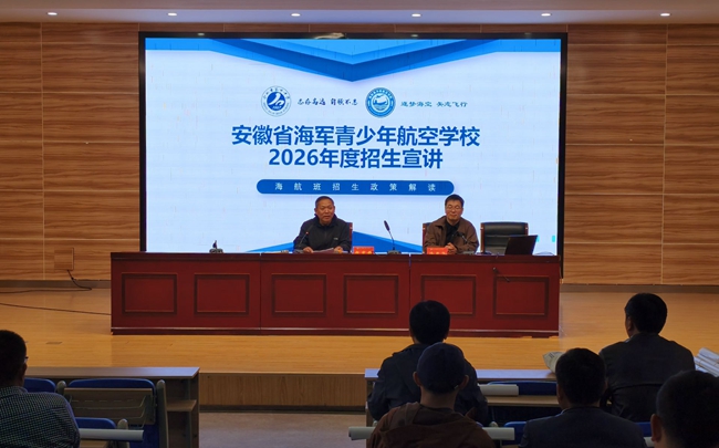 为扎实推进2026年安徽省海军青少年航校招生工作,4月11日下午,由黄山区教育局和海军青少年航空学校共同举办的海航班招生工作专题会暨学生、家长政策咨询会在黄山二中召开。区教育局分管领导、海军青少年航校政策宣讲团成员、各初中学校负责人、符合条件并有报考意愿的学生及家长参加会议。