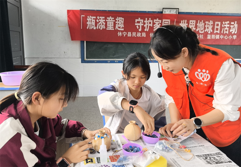 为迎接第57个世界地球日,进一步增强少年儿童的环保意识,引导青少年树立“珍爱地球、人与自然和谐共生”的生态文明理念,4月20日下午,在休宁县民政局的支持下,休宁县乐助社会工作服务社联合蓝田中心小学,为20余名儿童带来一场趣味十足的“瓶添童趣,守护家园”马赛克花瓶DIY主题活动。