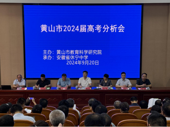 2024年9月20日上午,市教育局召开全市2024届高考分析会。市委教育工委委员、市教育局副局长谢其正同志出席会议并讲话,市委教育工委委员、屯溪一中党委书记、校长王玲同志,市教科院院长江立新,全市各区县教研室负责人,全市各普通高中校长、分管教学副校长、教务处主任和年级组长,市教科院高考学科教研员等共约120人参加会议。会议由市教科院副院长查晓驰主持。