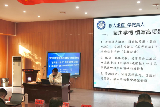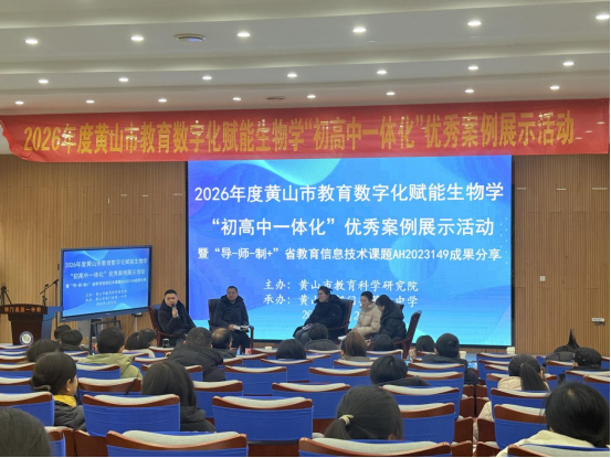 春山可望启新程,教研深耕绽芳华。1月22日,黄山市2026年度教育数字化赋能生物学“初高中一体化”优秀案例展示活动在祁门县第一中学圆满落幕。全市130多位生物学教研员、骨干教师齐聚伟长楼,以7堂优质课例、3场专题讲座为载体,共探“导-师-制+”理念与教育数字化深度融合的育人新路径,集中展现省级课题研究的阶段性丰硕成果。