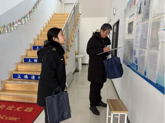 二是多维核查抓细节聚焦规范“全方位”。本次检查采取“四不两直”方式,围绕安全管理、规范办学、公示材料、档案建设及监管平台应用五大维度,对辖区内培训机构进行了现场核验。其中,重点核查了消防设施与疏散通道、电气线路规范、监控系统存储时长,并现场测试从业人员的消防实操能力。在办学规范上,坚决打击超范围培训及“预收费”超3个月或60课时、未全额纳入监管账户等违规行为,严查机构证照与师资资质200余份,同时,严格对照清单核验了公示材料的齐全醒目度,细致查阅了安全档案的闭环管理情况,并确保全国监管平台信息录入准确率与课程备案及时率均达100%,实现了线上线下数据一致。