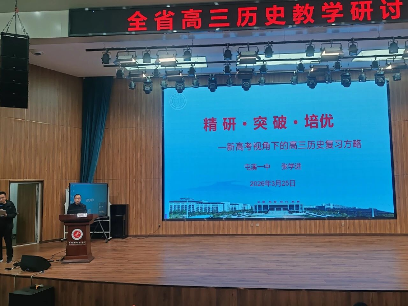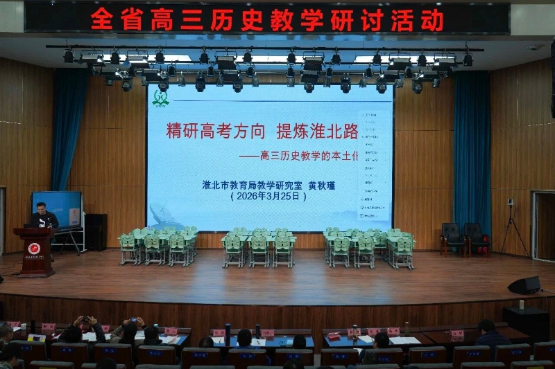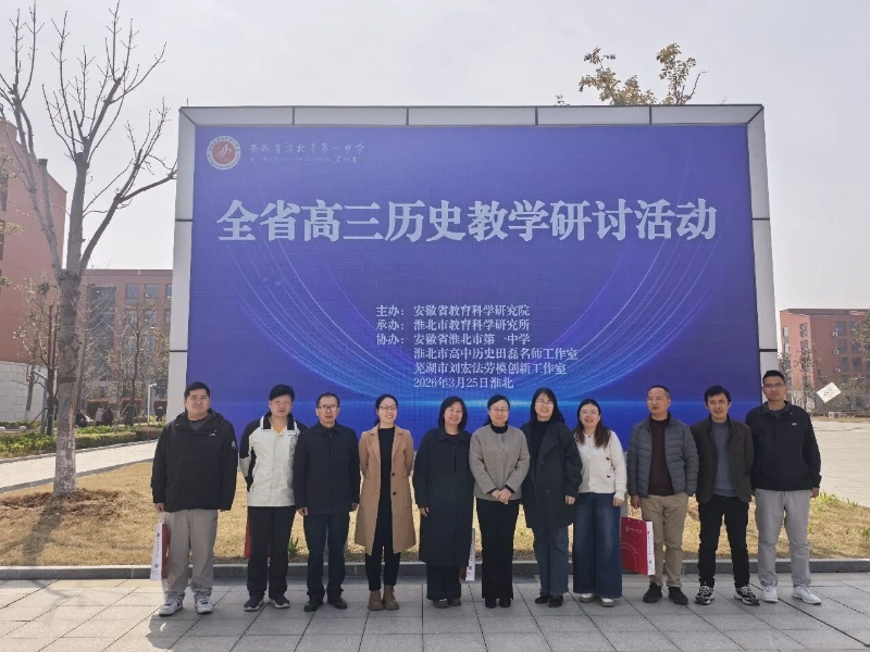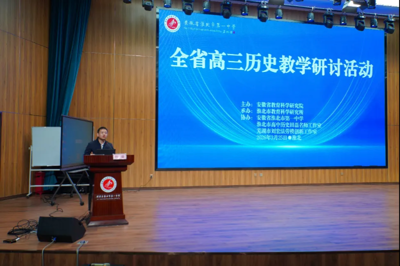 为深入贯彻新修订课程标准理念,进一步强化高三历史教学指导效能,2026年3月25日在淮北市第一中学成功举办了全省高三历史教学研讨活动。本次活动以“基于新修订课标理念的高三历史教学”为主题,由安徽省教育科学研究院主办,淮北市教育科学研究所承办,淮北市第一中学、淮北市高中历史田磊名师工作室、芜湖市刘宏法劳模创新工作室共同协办。来自全省各地的教研员、高中历史教师等170余人齐聚一堂,参与线下研讨。我市11名高三历史骨干教师参加了现场学习,各校历史教研组组织教师进行了线上学习。