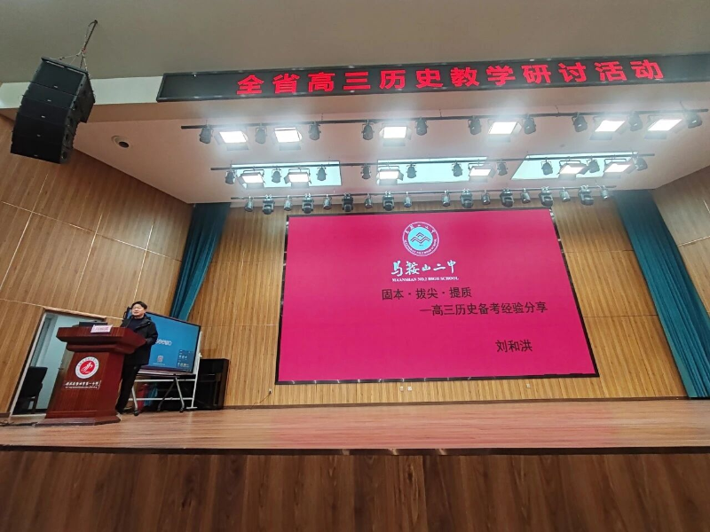 在高三教学经验交流环节,合肥市第八中学朱孟雅老师、淮南市第二中学王怀清老师、马鞍山市第二中学刘和洪老师分别结合本校高三备课组的教学实践,分享了各具特色的复习经验。特别是黄山市屯溪第一中学的张学进老师则带来题为《精研 突破 培优——高三历史备考的校本化实践》的二轮复习分享,他的分享有三个部分:“精研真题,把准命题规律”“突破瓶颈,科学有效备考”“协力合作,培养拔尖人才”三个部分,系统介绍了屯溪一中在备考组织、教研推进、课堂转型等方面的探索与思考,既有理论高度,又具实操指导性,引发了与会教师的广泛共鸣。