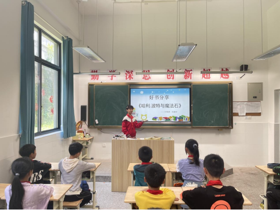隔壁六年级的同学此刻正在进行“‘阅’分享‘阅’快乐”读书分享会呢。他们分享的内容从作者简介、写作背景到句段分享、写法剖析,再到读书要义、个人感悟。条理清晰、由点及面。分享的方式也是各不相同,ppt、展示台、美篇这些信息化的手段与阅读分享进行了完美的融合,还有一些手巧的同学,竟手绘出了一张张有趣的ppt。真是让人不得不惊叹:原来阅读分享不仅仅是文字的交流,更是思想火花和才艺、科学技术的碰撞。