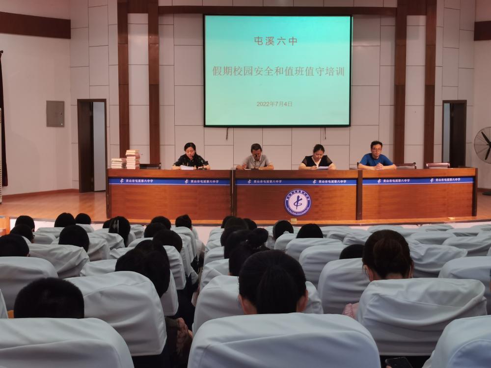 第一项议程由李劲梅副校长对暑期安全工作做了安排和布置。强调了疫情防控及“非必要不离黄”要求,对相关规定和责任进行了解读。李劲梅副校长指出校园安全重于一切,要求全体教职工要高度重视,切实将安全教育和管理工作落到实处,组织教师学习了《屯溪六中预防校园欺凌工作方案》,要求全体教职工结合学生的年龄特点和学生的实际,开展教育活动,预防校园欺凌,同时对值班值守进行了培训,还要求教职员工假期提高安全意识,落实纪律要求。