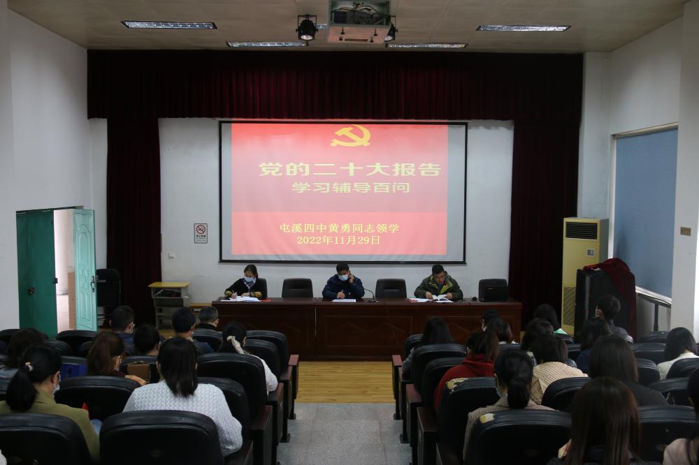 为深入学习贯彻党的二十大精神,持续推进“学陶师陶研陶做陶”主题教育活动,屯溪四中于11月29日召开全体党员及入党积极分子会议。
