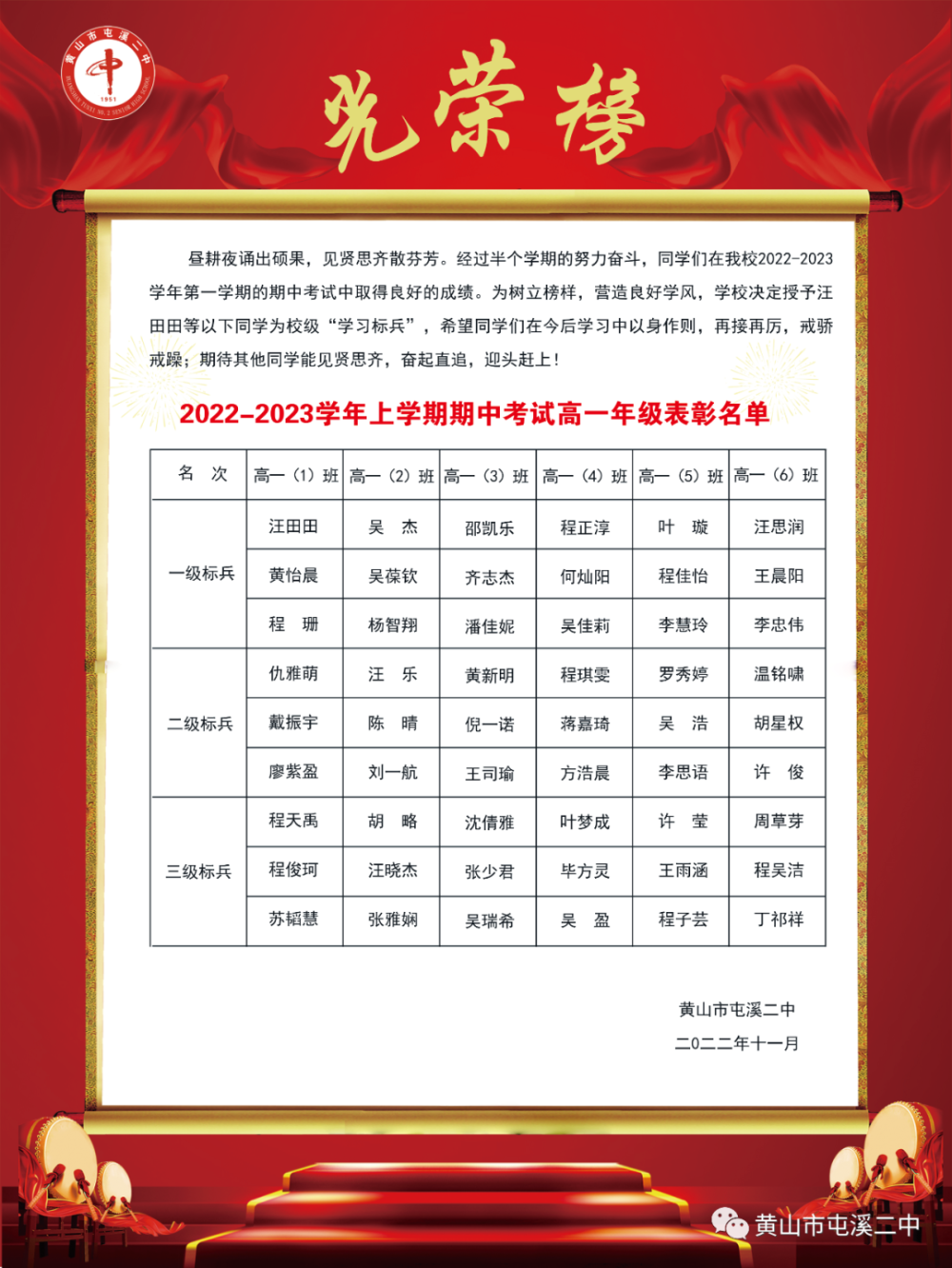 昼耕夜诵出硕果,见贤思齐散芬芳——屯溪二中2022-2023年度上学期期中考试“学习标兵”表彰大会
