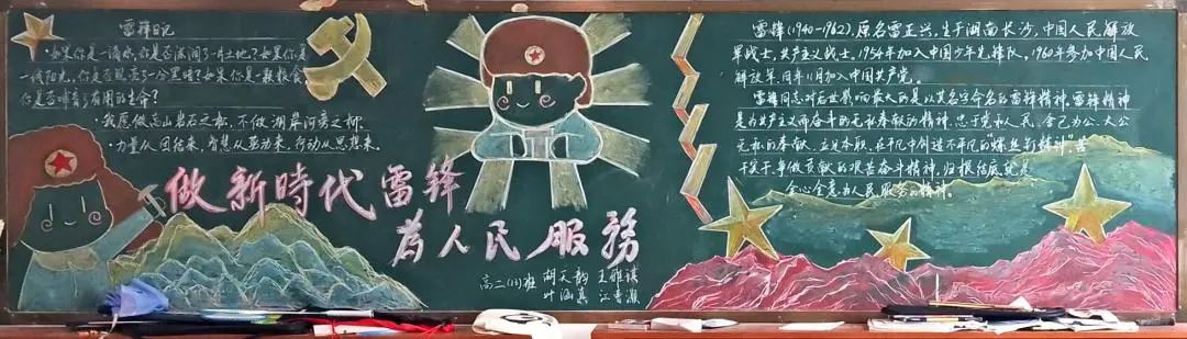 为贯彻落实雷锋精神和志愿服务精神,传承民族文化,创建和谐校园,将雷锋精神与时代元素结合起来,抒写当代中学生的青春志愿和奉献精神。屯溪一中校团委在全校开展了以"传承雷锋精神 凝聚奋进力量”为主题的黑板报大赛,本次大赛共评出一等奖2名,二等奖6名,三等奖8名,现将获奖情况予以通报: