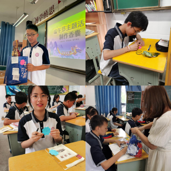七年级的学弟学妹们为这场助威活动提前做了精心准备,团支部和少先队结合端午节主题活动,请七年级的少先队员们制作香囊,为九年级学子祈福,同时亲手将写下的祝福卡片装入香囊,百余张祝福卡片饱含着学弟学妹们的深情祝愿和美好期盼。其中有给九年级学子增强干劲的“有梦,就放手去搏”;也有给他们疏导心情的“不要焦虑,放平心态,中考加油”;还有给予美好期望的“乾坤未定,你我皆是黑马!”一个个香囊,一张张卡片,传递着屯溪三中的温暖与感动,展现着屯溪三中学子的团结与友爱。
