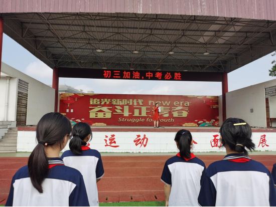 随后,七八年级学弟学妹们在王品博同学的带领下以整齐洪亮的声音高声呐喊“初三加油,中考必胜!”高亢的声调、激情的旋律汇聚成嘹亮的祝福声直冲九霄。