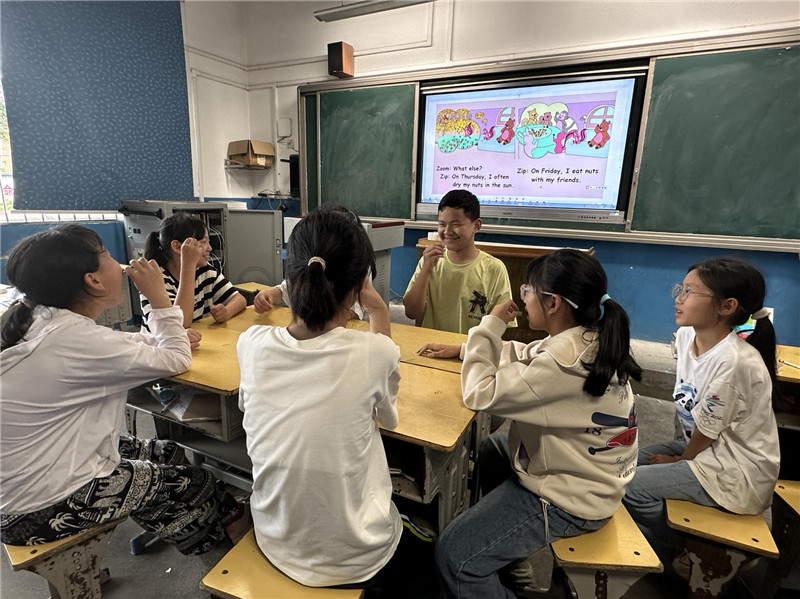 在“双减”政策的推动下,榆村中心小学深入贯彻素质教育理念,积极开展课后延时服务。在此框架下,英语学科的延时活动以课本故事和电影片段为核心教学内容,旨在激发学生的学习兴趣,并通过多样化的活动形式,丰富乡村小学学生英语语言使用氛围,促进学生听说读演等语言技能的全面提升。