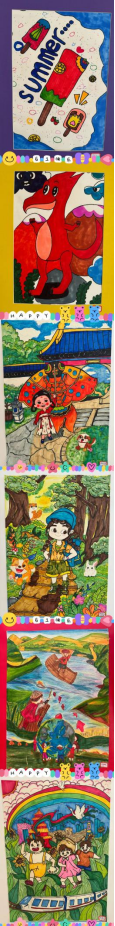 异彩纷呈的国画、儿童画作品引人入胜,灵动的图案跃然纸上,古朴的花木匠心独运......孩子们用稚嫩的画笔描绘眼中流光溢彩的世界。创意美术类作品主要运用水粉、丙烯、水彩等颜料,通过不同主题,呈现了别样味道。