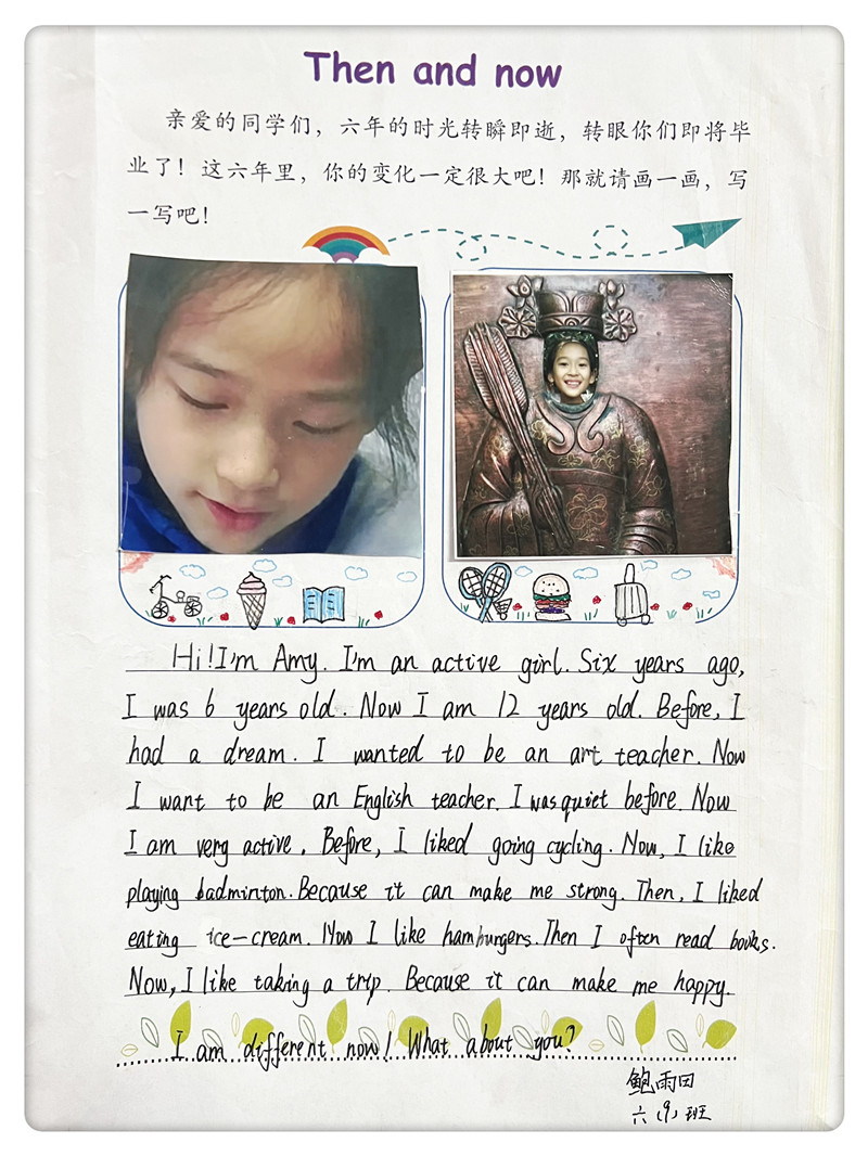 六年好景君须记,最是难忘毕业时。为了贯彻落实“双减”政策,打造“状元文脉 宏志一小”校园文化,让孩子们留住童年多彩的学习时光,筑建未来美好的理想之梦,海阳一小六年级老师在课后服务期间开展了以"Then and Now"为主题的英语特色活动。