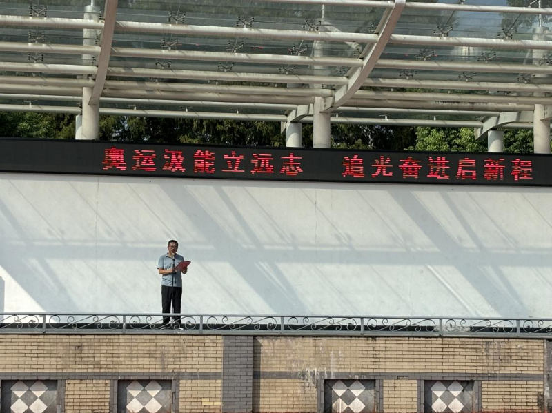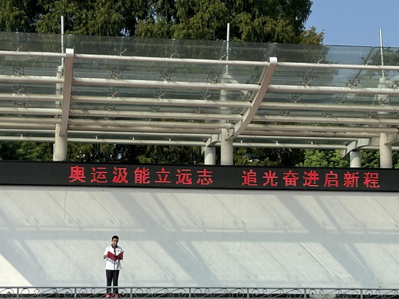 程鸿校长作专题发言。“少年负壮气,奋烈自有时。”他呼吁同学们以奥运精神为引领,凝心聚力,团结协作,志存高远,追求卓越,在新学期的征程中不畏风浪,不惧挑战,不断超越自我,奋进启新程,建功创优绩。