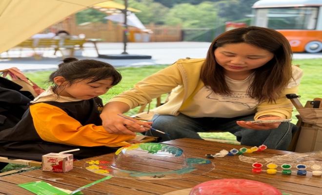 在“青瓦墙下,一方草坪连着古今”,亲子创作课堂热火朝天: