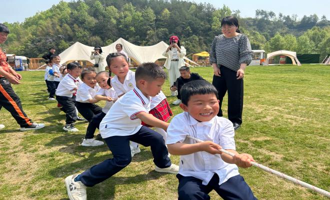 爸爸、妈妈们也童心未泯,激烈的拔河比赛仿佛回到了童年时光!