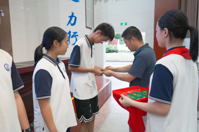 随后,新团员代表八(5)班程子轩同学发言,他难掩激动:“团徽是荣耀,更是鞭策。我们将以团章为镜、以模范为标,勤奋学习、勇担责任,用实际行动践行‘请党放心,强国有我’的誓言!”老团员代表九(5)班余欣悦同学结合自身经历分享感悟:“团员身份意味着更高的标准与更重的责任。希望新团员们珍惜荣誉,在志愿服务、社会实践中锤炼本领,让团徽在奉献中闪耀光芒!”
