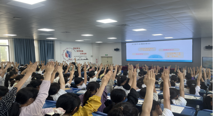 互动环节成为全场亮点。同学们踊跃提问,涉及亲子代沟、同学关系、学习压力等问题;家长代表也积极参与,提出孩子时间管理、青春期沟通等困惑。胡老师凭借丰富经验,为学生和家长分别给出细致实用的建议,赢得阵阵掌声。