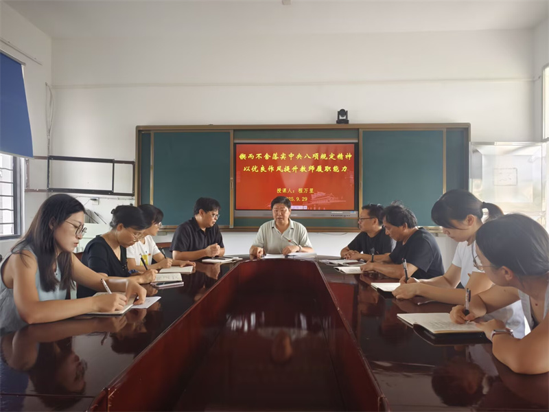 国庆、中秋将至,为巩固拓展深入贯彻中央八项规定精神学习教育成果,9月29日,学校党支部书记为全体党员教师上了一节题为“锲而不舍落实中央八项规定精神,以优良作风提升教师履职能力”的党课,掀起了学校作风建设的学习热潮。