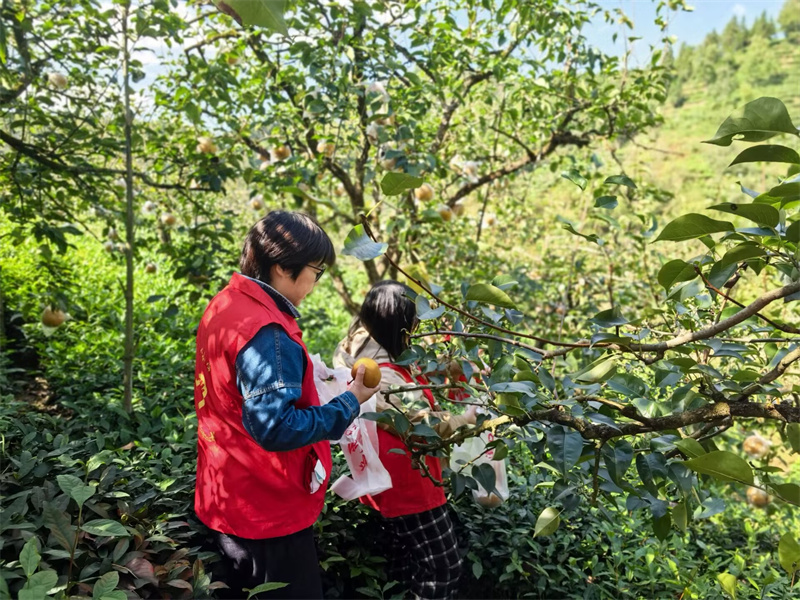 活动现场,党员与志愿者们迅速投入劳作模式:有的手持果篮穿梭于梨林间采摘成熟的桂花梨,有的协助农户分拣、装袋,大家分工协作、干劲十足,田间地头洋溢着忙碌而热闹的氛围。农户们看着满树的梨果被有序摘下打包售出,脸上露出了欣慰的笑容,连连向志愿者们道谢。