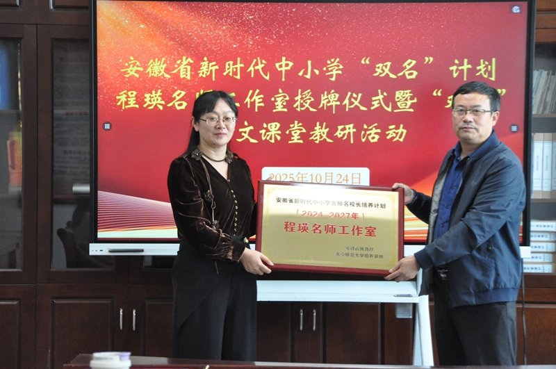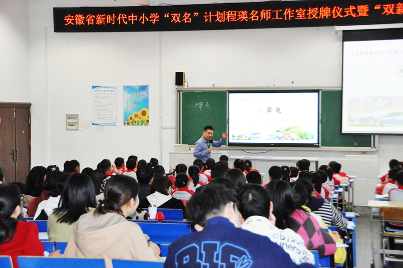 为充分发挥名师示范引领作用,推动新时代中小学教师队伍建设,10月24日上午,安徽省新时代中小学“双名”计划——程瑛名师工作室授牌仪式暨“双新”背景下语文课堂教研活动在黟县碧阳小学举行。黟县县委教育工委委员、县教师发展中心主任孙光宏为工作室授牌。黟县教育局相关股室负责人、程瑛名师工作室全体成员及县域各小学语文教师代表参加了本次活动。