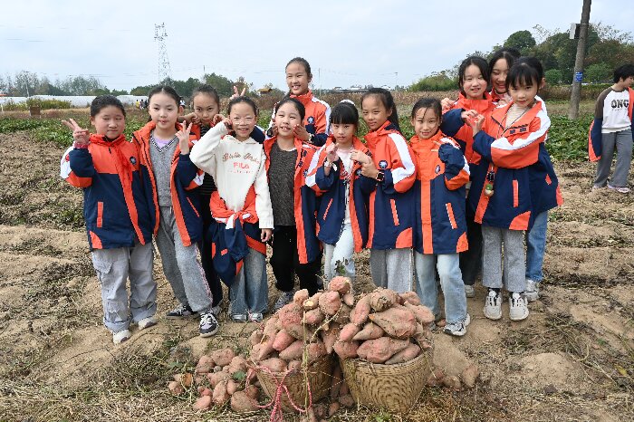 五六年级的同学们来到傍霞村,亲身感受“春种秋收”的农耕乐趣。在乡村工作人员的指导下,大家拿起工具学习割水稻,掌握收割技巧;手握小锄头挖山芋,体验从翻土到收获的完整过程。