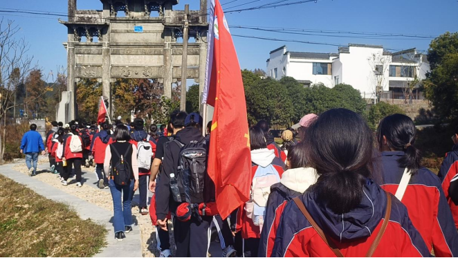 第一导师们则贴心守护,有的给孩子们一路鼓劲,有的不断提醒孩子们路上安全,用行动为“导-师-制+”增添亲情温度。同伴导师则在沿途带领同学们唱着歌儿鼓舞大家坚持到底。学子们一路欢声笑语,时而参观名人闪耀的徽州照壁,时而欣赏初冬时分的古徽村落,将对徽州的热爱融入每一步前行。