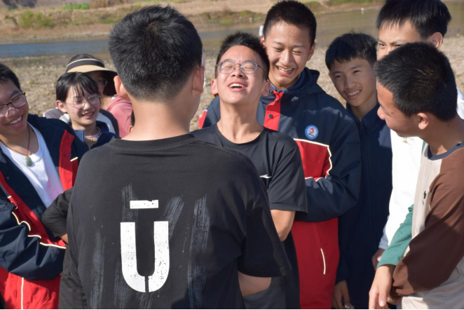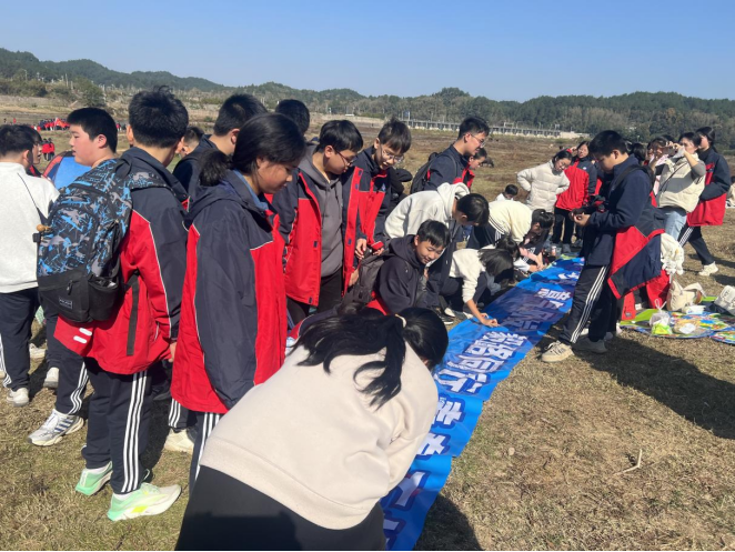 野餐过后,“师生共育栋梁材”的互动氛围推向高潮,八11班的同学们在“十一少年 意气风发 毅路同行 青春无悔”的横幅上签下自己的名字。“争分夺秒”游戏中,第一导师指导学生们开展团建活动,首席导师与学生一起参与游戏,争分夺秒在田野中往返,步伐协调间尽显默契;“你划我猜”游戏时,同学们用夸张的肢体语言,表演比划成语典故,同学们绞尽脑汁展现自己的成语储备,阵阵笑声湮没了这热闹的河滩;“徽州文化知识抢答”环节,从黄山奇松的名称到新安画派的代表人物,学子们踊跃作答,首席导师与第一导师适时补充讲解,让游戏成为“品徽州”的延伸课堂。沙滩上,师生同乐、家校同心,每一张笑脸都印证着“导-师-制+”的育人成效。