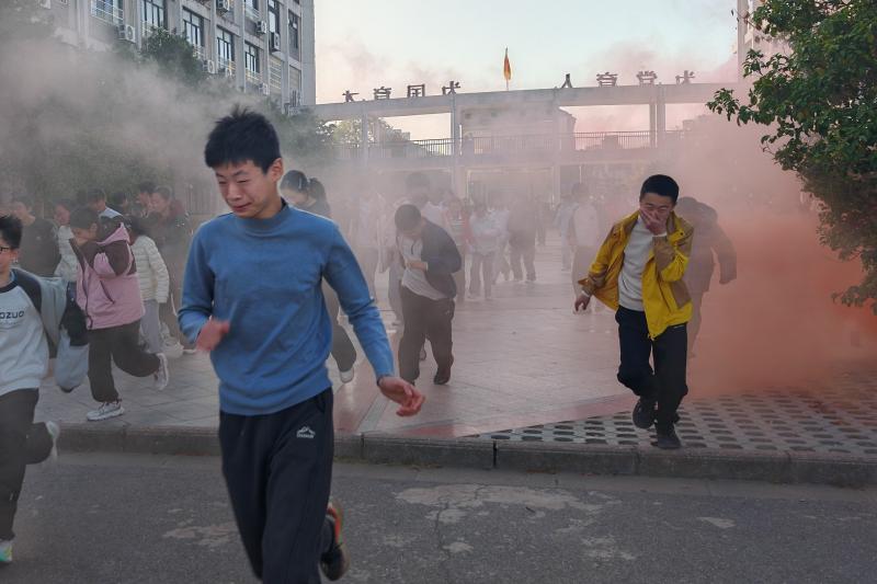 应急警报划破校园宁静,演练正式拉开帷幕。各班级导师第一时间抵达岗位,按照预设方案,引导学生弯腰低姿、手捂口鼻,沿着指定路线快速有序撤离。走廊内,导师们侧身守护、轻声指引,避免拥挤踩踏;楼梯口,导师们定点疏导、控制节奏,确保队伍平稳下行;集合点,导师们迅速清点人数、核对名单,第一时间向现场指挥组汇报情况。整个疏散过程忙而不乱、快而有序,充分展现了“导-师-制+”模式下的应急处置效率。