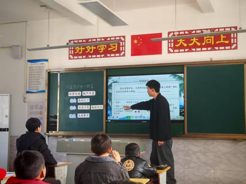 平里中心学校教师周毅帆执教三年级语文《富饶的西沙群岛》拉开活动帷幕。教学中他以“招募小导游”为情境,紧扣单元“围绕关键句写清楚”的核心目标,设计了“抓关键句——品读优美语句——写导游词”的递进式教学环节,将枯燥的习作训练转化为“介绍西沙群岛美景”的趣味任务,逐步引导学生将阅读方法转化为写作能力,实现了阅读与习作的深度衔接,课堂氛围生动而富有感染力。