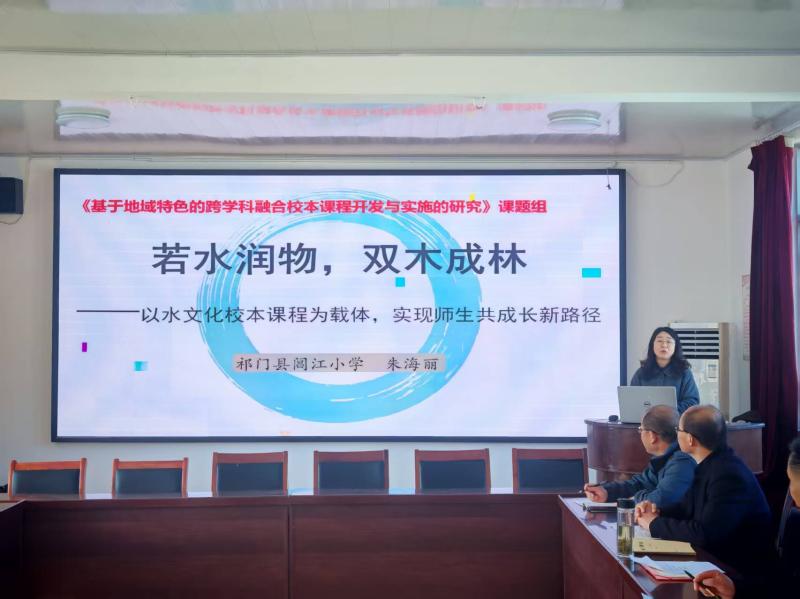 朱海丽以《若水润物,双木成林——以水文化校本课程为载体,实现师生共成长新路径》为题进行专题微分享。她系统介绍阊江小学在校本课程建设方面的实践成果,重点分享“导师引领、团队共研”的课程开发机制,为乡村学校依托校本课程实现内涵发展提供可行性参照路径。