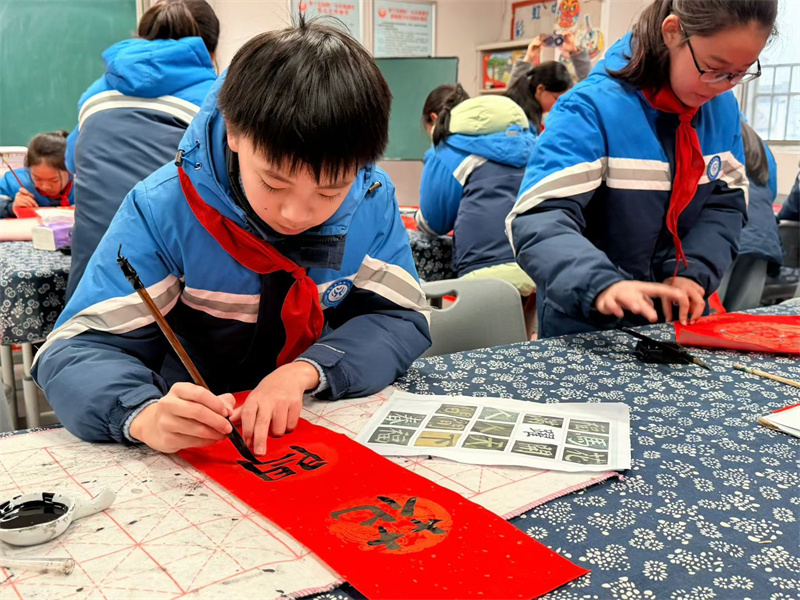 导-师-制+笔墨迎新春,红笺送福至——海阳一小开展迎新年软笔书法现场比赛活动