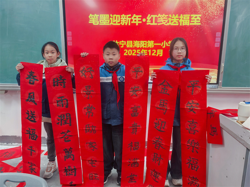 2025 年 12 月 23 日,休宁县海阳一小以 “笔墨迎新春,红笺送福至” 为主题,开展软笔书法现场比赛,深耕 “悦读黄山,书香徽州” 育人理念,深化校园导师制实践。