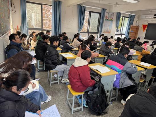 督导组首先深入教学一线,与全体语文组教师一起,旁听了新进教师金晴的一堂语文课。课后,督学与授课教师进行了面对面交流与点评,既充分肯定了教师在调动学生积极性、运用现代教育技术方面的亮点,也中肯地指出了在课堂深度、重难点突破、分层教学等方面可优化的空间,为我校课堂教学的改进提供了专业指导。同时对语文组的教研氛围表示认可,对学校教与学的积极状态给予了肯定和鼓励。