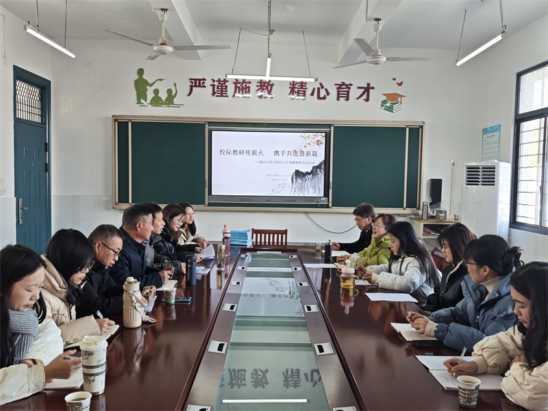 1月8日上午,西田小学校长带领7名骨干教师走进商山小学,开启以“校际教研传薪火,携手共进谱新篇”为主题的校际交流暨跟岗学课题活动。本次活动聚焦西田小学教育教学课题研究薄弱的现状,通过导师经验分享、课题材料观摩、两校研讨互动,为教师科研能力提升注入务实动能。